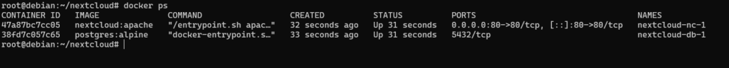 • ports: "80:80"port 80 kontenera Nextcloud jest mapowany na port 80 hosta, więc wejdziesz w przeglądarce na http://adres_serwera:80.