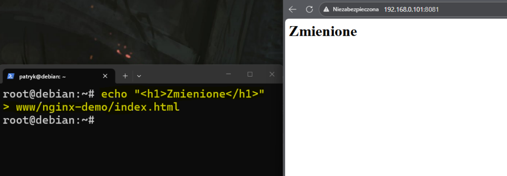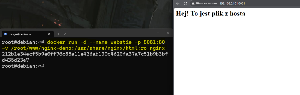 echo "<h1>Hej! To jest plik z hosta</h1>" > www/nginx-demo/index.html