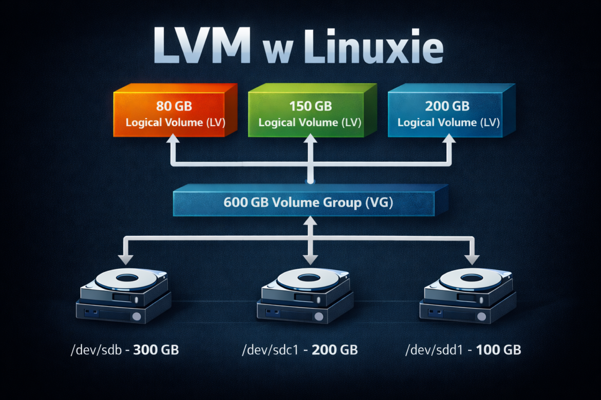 LVM w Linuxie to bardzo praktyczne narzędzie do zarządzania przestrzenią dyskową. Pozwala odejść od sztywnego myślenia o zwykłych partycjach i przejść do bardziej elastycznego modelu pracy. Dzięki niemu możesz tworzyć wolumeny logiczne, rozszerzać je, dodawać nowe dyski do istniejącej puli i lepiej organizować dane. To rozwiązanie, które świetnie sprawdza się w nowoczesnej administracji systemami.