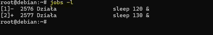 Polecenie jobs pokazuje zadania uruchomione w ramach bieżącej sesji shella. Dzięki temu możesz szybko sprawdzić, co aktualnie działa w tle, co jest zatrzymane i jaki numer zadania został nadany przez shell.
