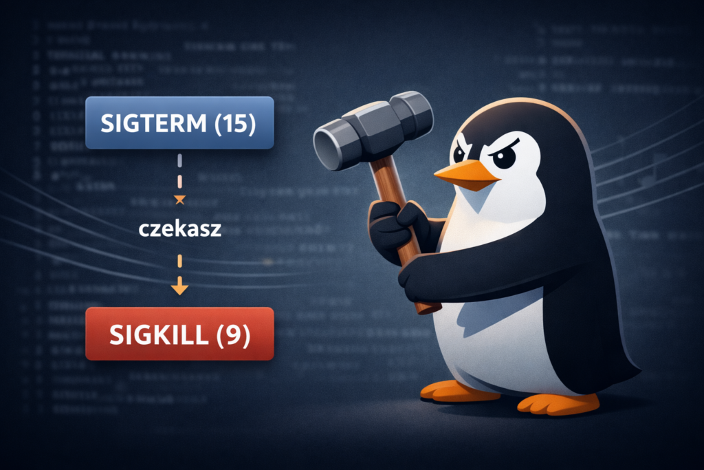 - 9 (SIGKILL) – „kończymy temat siłowo” (proces nie ma szans posprzątać)