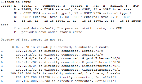 Wpisy w tablicy routingu są zwykle oznaczane literami, które informują, skąd dana trasa pochodzi. Przykładowo: