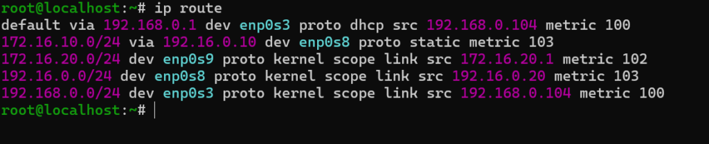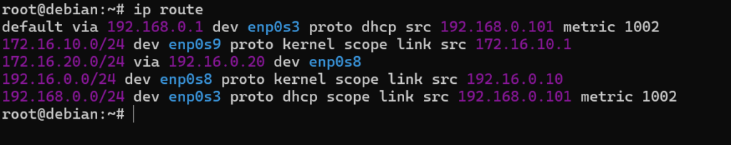 Spójrzmy teraz na praktyczny przykład. Załóżmy, że system Debian ma komunikować się z siecią 172.16.20.0/24, która znajduje się za systemem CentOS. W tej chwili Debian nie zna tej sieci, więc nie wie, gdzie powinien wysyłać pakiety do tego segmentu. Musimy więc dodać trasę statyczną, która nauczy go, że droga do tej sieci prowadzi przez odpowiednią bramę. To właśnie jest sedno routingu statycznego: system nie zgaduje, tylko korzysta z wpisu, który mu dodamy.